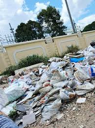 Rác tràn ra đường khi các bãi tập kết rác thải chưa được vận chuyển về nhà máy đốt rác phát điện Lương Tài.